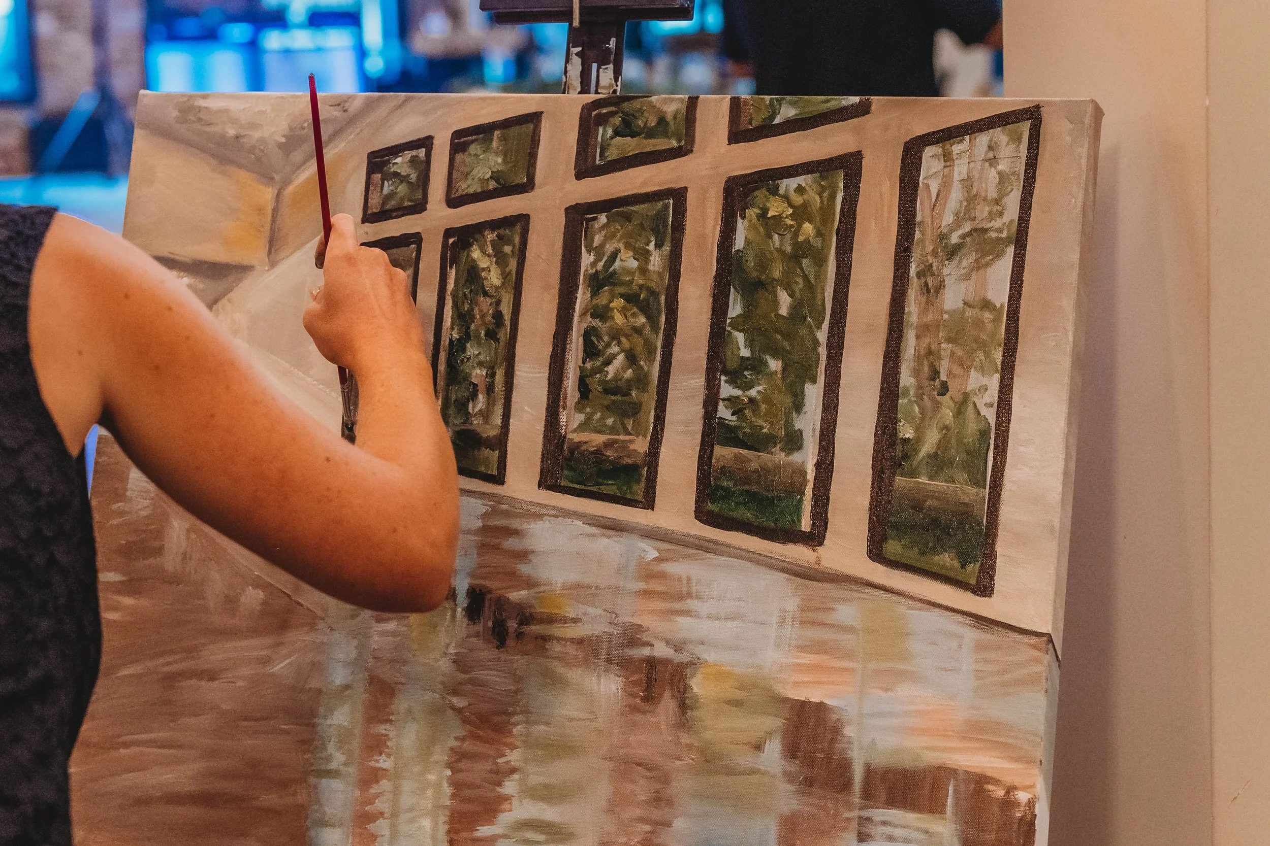 My Live Wedding Package includes: Professional quality cotton canvas, quality acrylic paints, consultation to confirm your vision, 4-6 hours of live painting in front of guests, and up to 10 hours of in-studio refining and varnishing